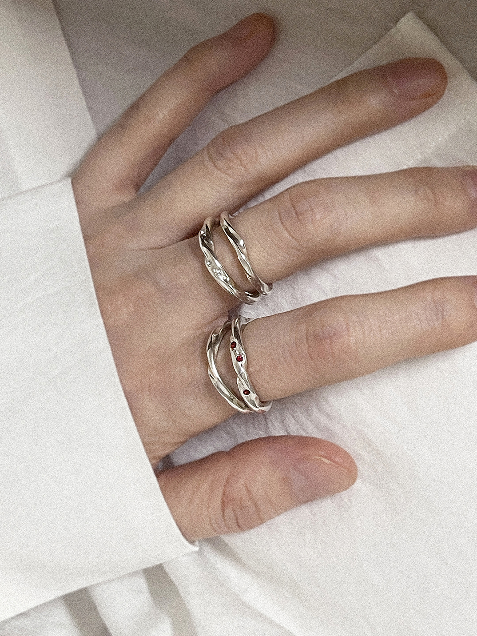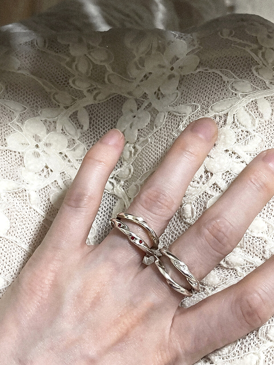 웨이브 사이사이에 스톤을 세팅한 섬세한 디테일의 반지입니다.