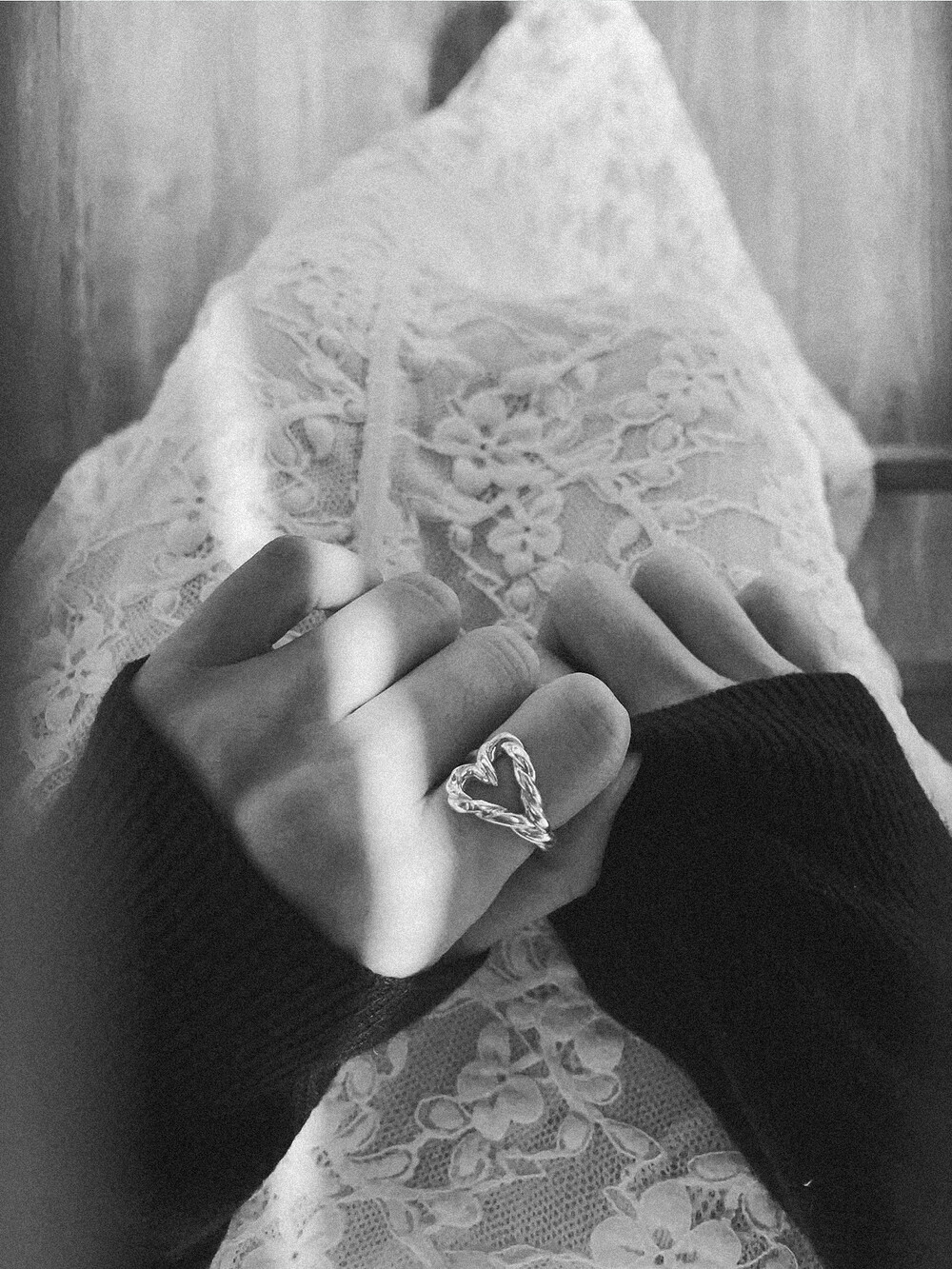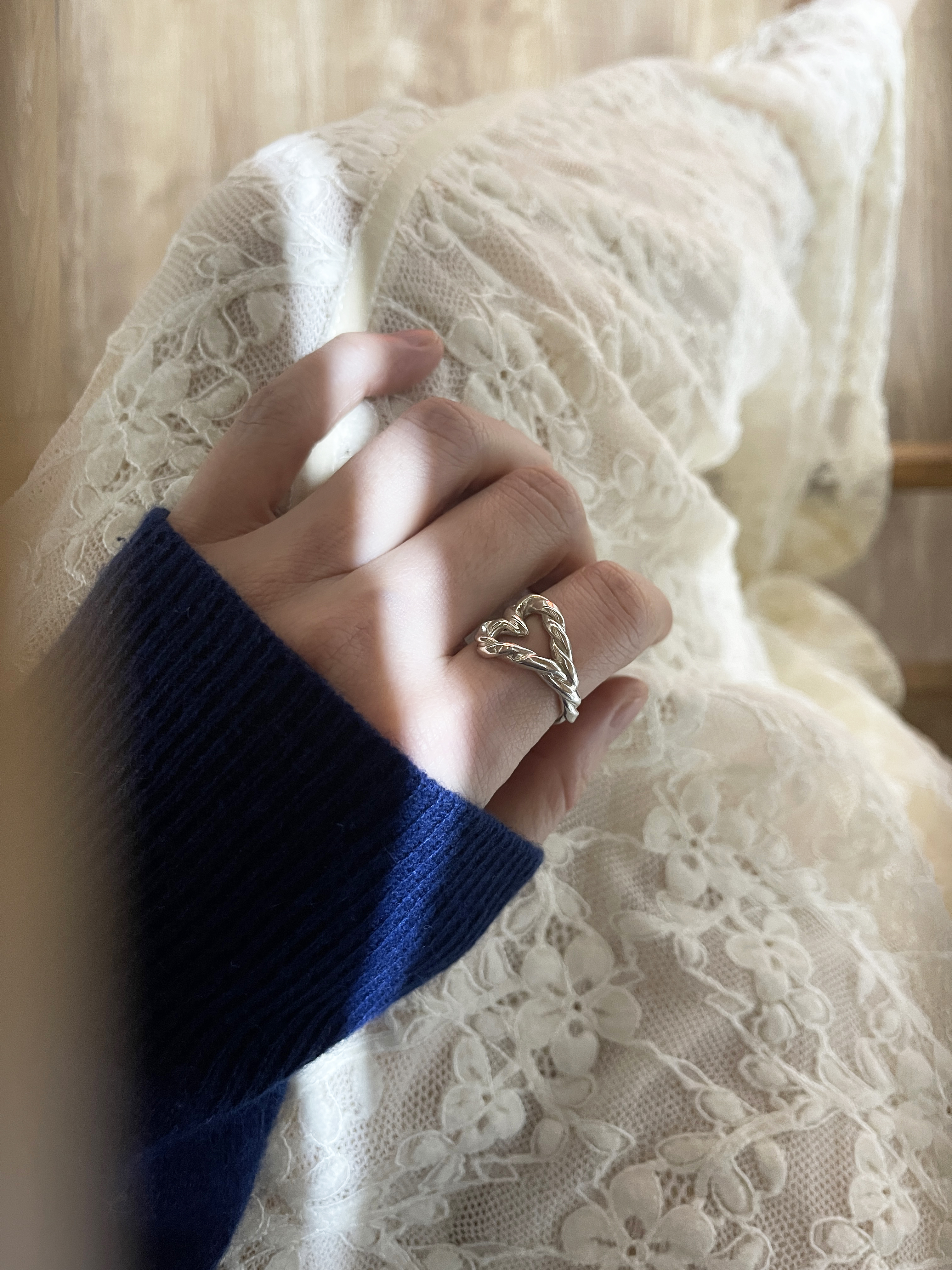 러프하게 꼬아 만든 하트 형태의 실버 반지 Belove Ring 입니다.
