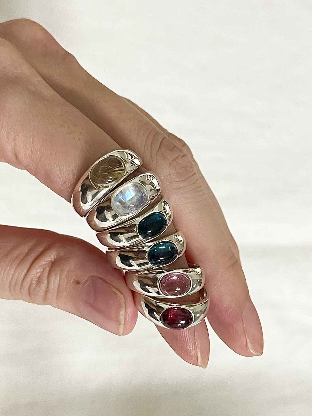 2. 천연 레인보우 문스톤(6*8mm)이 세팅된 돔링으로 13호수 입니다.