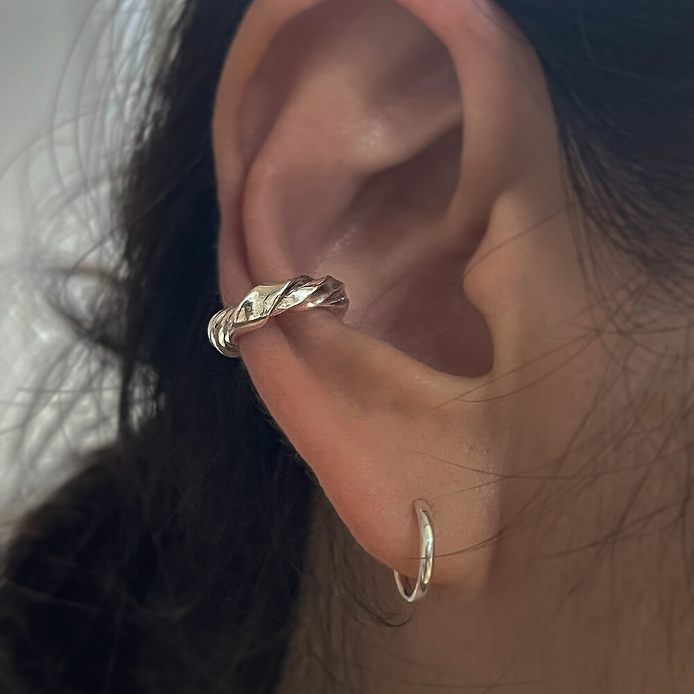독특한 꼬임 형태의 핸드크래프티드 이어커프입니다.